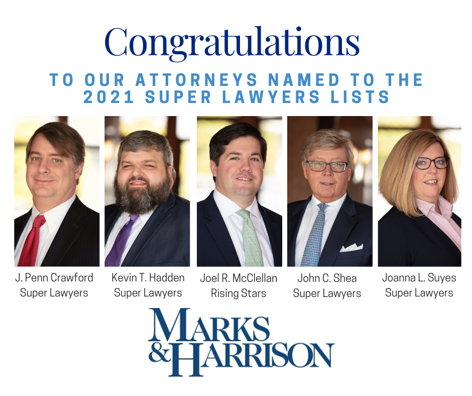Five attorneys from Marks & Harrison have been named to the Virginia Super Lawyers and Rising Stars list for 2021. Super Lawyers recognizes attorneys who have distinguished themselves in their legal practice and less than five percent of lawyers in each state are selected to this exclusive list. The selection process for the Rising Stars […]